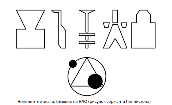 Промъквайки се през гората, сержантът и редник влязоха на полянката. В нея в центъра видяха предмет – пресечена пирамида на 3 метра вътре диаметърът на долната основа и 2 – горната. Тя не издържа земя и окачен на височина около 1 метър, сякаш „опиращ се“ на три леки стълбове. Червена светлина висеше и мигаше над пирамидата и под две сини висяха от нея. На повърхността на обекта войниците излязоха непонятни знаци. – Напред – тихо заповяда сержантът. Бъроуз излетя раменна карабина.