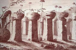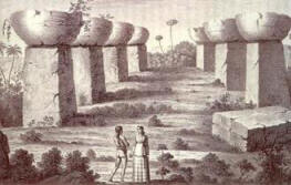Снимки от открити източници на остров Тиниан в миналото с цяло каменна алея, илюстрация от непознато старо издание