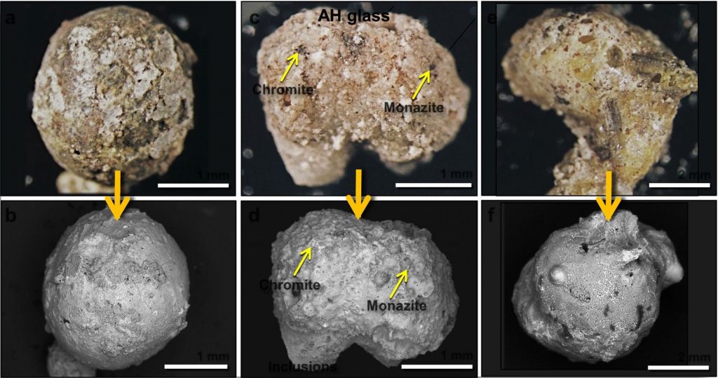 Сред кремъчните инструменти, костите и подобни на хижа конструкции изследователите откриват нещо друго: сферични стъклени топки, които се образуват по време на изключително горещи, високоенергийни събития, обикновено свързани с космически сблъсъци, включващи астероиди и комети.