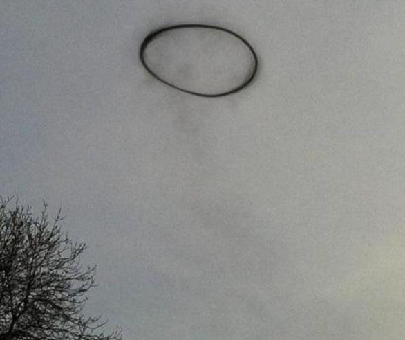 Метеорологичните експерти бяха озадачени от черните пръстени, които се появи в небето над Кралския леймингтън Спа, Англия, в петък вечер. Ученичката Джорджина Хип играеше тенис с майка си Джо, когато погледна небето, видя тайнствен черен пръстен. Тя е Снимах кръг на мобилния си телефон, но засега никой може да обясни произхода на странната черна маркировка. Според гимназисти, пръстенът остана в небето за около три минути преди отколкото да изчезне без следа.