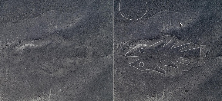 Учени от университета в Ямагата (Япония), докато учат Пустините Наска в Перу се натъкнаха на неизвестни досега рисунки на гигантски време Публикуван е доклад за тази находка. на официалния уебсайт на японския университет.