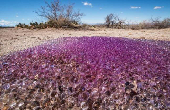 Според местния телевизионен канал KGUN-9 хиляди мистериозни, полупрозрачни лилави сфери наскоро бяха открити в пустинята Аризона.
