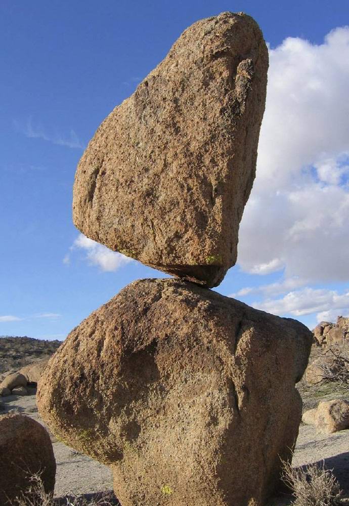 Грант отбелязва, че камъните поддържат акробатичен баланс може да се намери по целия свят и няма нищо изненадващо. Метеорологичните и геоложки сили унищожават и те измиват скалата около тях, защото гигантските блокове поемат необичайна позиция, балансиране на земята или други камъни. че по-малко, дори и най-малкото земетресение се чука лесно тези природни паметници. Поради тази причина на места с всякакви сеизмична активност никога не балансира камъни да се случи. Въпреки това над Сан Андреа, където силни земетресения толкова често, колкото дъждове по теми, калдъръмените продължават да стоят като нищо не се случи, просто игнорирам законите на природата.