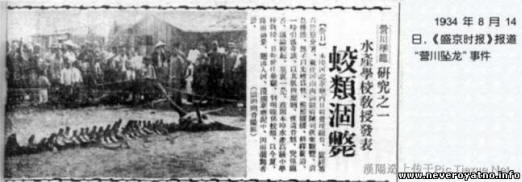 Напоследък често срещам съобщения за реликтни същества, които уж са оцелели до наши дни. Така в Китай през Провинция Ляонин провежда възстановяване на драконов скелет, намерен в 1934 г. в устието на реката, на 20 километра от град Yingkou.