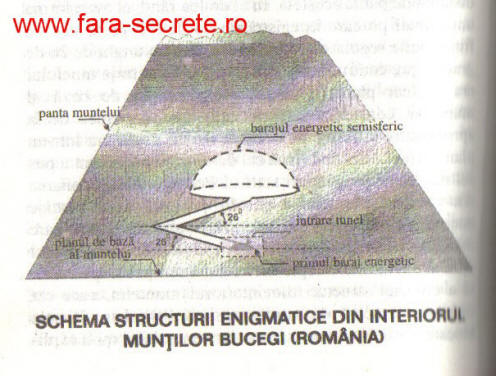 САЩ бързо проследяват действията на Румъния чрез НАТО [потвърди] и Ватикана даде малко на румънското правителство много важни документи, свързани с миналото на страната. Геодезическото сканиране на Пентагона разкри две основни енергийни бариери. Припокриване с ограничен достъп с използвайки изкуствена енергия: първата е направена под формата на стена, които блокираха достъпа до тунела. Вторият беше огромен като купол или полукълбо, в противоположния край на тунела, недалеч от центъра на планината. Целият тунел на полукълбата беше разположен в равнина успоредни на земята и припокриващи се вертикално полукълбо съответстваха на скалите по билото, наречени „Баба“.
