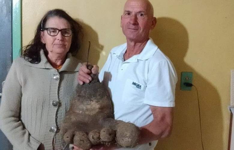 Въпреки това, всъщност мистериозната находка беше само само гигантски картоф, който прие толкова причудлива форма. „Стъпалото“ е дори покрито с тънки корени, наподобяващи коса. за Според двойката тя расте в близост до дома си повече от шест години. картофи, но Кикуинели никога досега не се е срещал с нищо така. Съпрузите казват, че им е жал невероятна грудка за храна, затова решиха да я предадат Музей на картофи във Флорианополис.