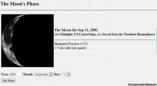 Фазата на луната в горната дясна част на албума показва с точност на датата 11 септември 2001 г.