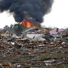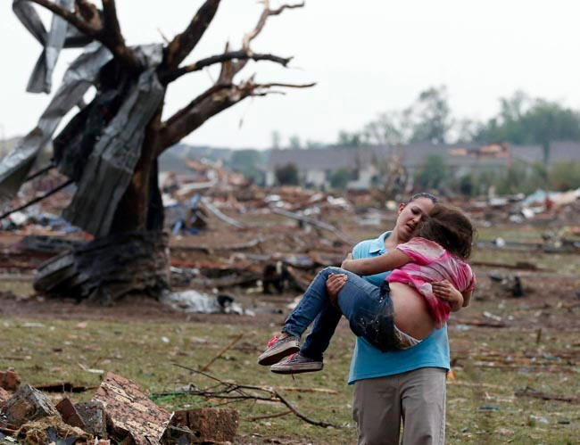 Броят на жертвите на торнадо в Оклахома се е увеличил до 91, седем от тях са деца, каза държавният криминалист. “Хора изпълзявайки изпод останките, това е като зона на война действия “, каза един от спасителите и добави, че е в състояние да шок, много просто седят пред руините на домовете си и нищо вече не правя. Метеоролозите предупредиха за възможността поява на торнадо в продължение на няколко дни, така че жителите засегнатите райони бяха предупредени и властите бяха подготвени за лошо време. Спомнете си миналата неделя за няколко централните щати сринаха две дузини торнадо. Повечето от елементи засегнаха Оклахома, Айова и Канзас. В много области прекъснати електропроводи, хиляди къщи останаха без светлина. Местните жители се съветват да останат в домовете си и за възможността да не излизате.