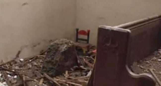 Загрижени жители се насочиха към храма, където погледът им потресаваща картина се разкри: огромен зяп в покрива на сградата дупка и вътрешни фрагменти от греди, пейки и църковни статии.