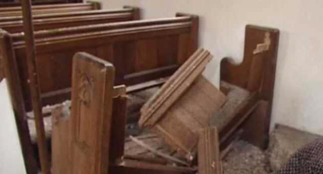 Служителите на реда забраниха любопитните минувачите влизат в разрушената сграда, тъй като повечето дървени греди се люлеят опасно отгоре, а пода е покрит остри парчета счупено стъкло. „Няма да позволим да проверим църква до последствията от поражението елиминиран “, категорично каза Ричард Уоруик.