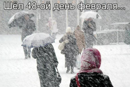Сняг дойде в Москва в нощта на 23-24 март. Сняг без два почивни дни. Вятърът затихна едва сутринта на 26 март. Според прогнозите метеоролозите, студеното време ще престои в столицата на Русия до края на месеца и затоплянето е възможно само в началото на април.