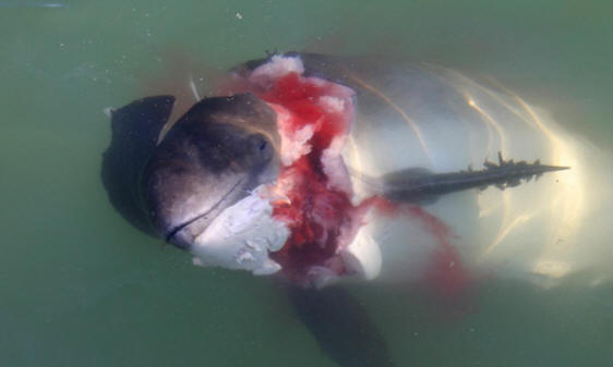 Снимки от открити източници Учените предполагат, че хищни тюлени в началото те се хранели с телата на делфини, попадащи в мрежи за риболов. С времето вкусовете им се промениха и те започнаха да ловуват на живот делфини.