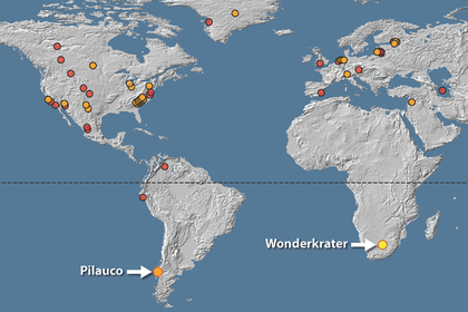 От находища на торф в южноафриканската провинция Лимпопо скални проби бяха извлечени и подробно проучени от учените. Най- пробите разкриват невероятно високи концентрации на платина, често открити в космическите тела. Това, казват изследователите, е достатъчно силен аргумент, че голям космически обект (астероид или комета) се сблъска със Земята. Вероятно небесно тяло е паднало преди 12,8 години в Север Гренландия, където учените откриха кратер с диаметър 31 км.