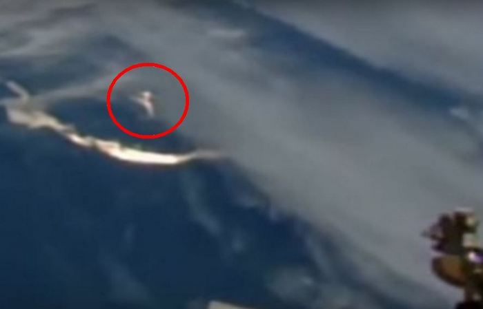 Въпреки това през последните дни служителите на НАСА пропуснаха друго интересен случай с НЛО, когато камерите на станцията попаднаха в горната част пластове от земната атмосфера бързо движещ се обект, много подобен върху камъчета-камъчета, прескачащи повърхността на водата. Вярно това “космическото камъче” беше много по-интересно, защото си тръгна дъждовен блясък в облаците, донякъде напомнящ ореол.