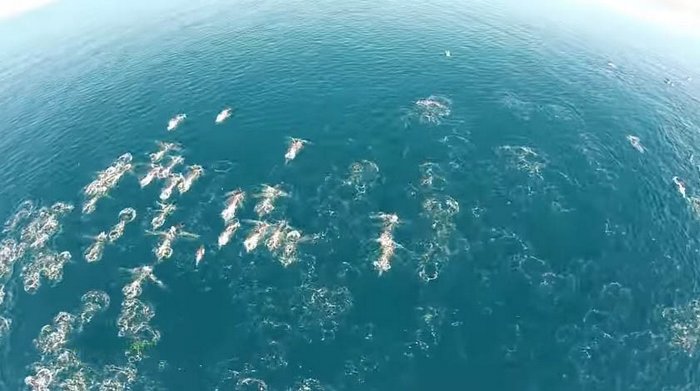 Използвайки дрон край бреговете на Калифорния (район Дейна Пойнт, който южно от Лос Анджелис) е заснето невероятно видео която улавя цяло ято русалки – мистериозно хуманоидни фигури, пламтящи в морето.