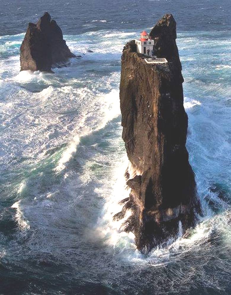 Самата тази недостъпна скала е на шест мили от брега. Исландия, височината му е около 60 метра. Тя е най-високата от трите като каменни върхове, които се откъсват от морето. Станете тук без хеликоптер – и днес не е лесна задача, така че можете да си представите подвиг на строители, които почти ръчно са изградили това уникален обект.