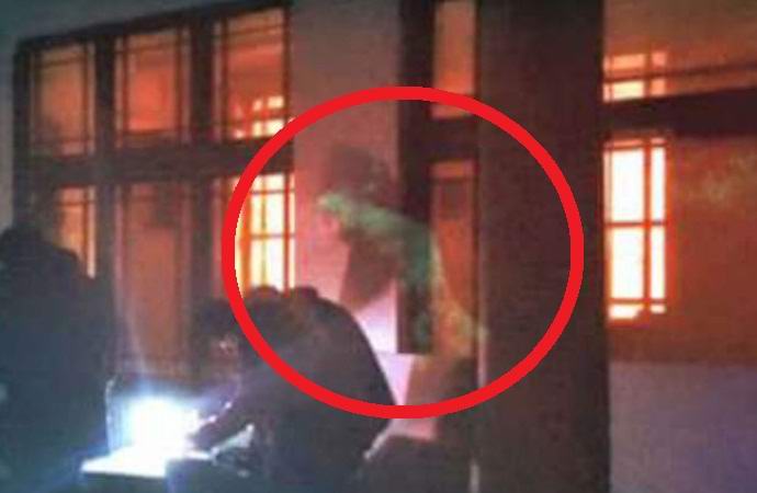 Когато настройвате светкавицата на камерата за мобилен телефон, човек няколко веднъж снимал залата. В една от получените снимки той веднага забелязал тъмен и полупрозрачен човешки силует, подпрян над друг посетител на библиотеката, седнал на маса наблизо. Джонатан започна да се оглежда, опитвайки се да види „жената в черно“ със собствените си очи, колкото и мистериозен призрак да изглежда проектиран да се показва само на снимката.