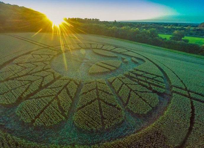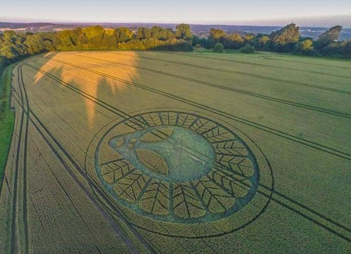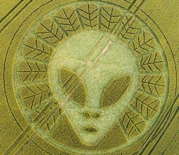 На едно от полетата в английския окръг Сури е направено много неочаквана находка. Местен фермер, открит в житото рисуване. Учуденият фермер първо почувства, че някой е направил той отглежда жив лабиринт и се насочи към органите на реда органи. Когато ченгетата погледнаха полето от хеликоптер, те бяха изумен: предполагаемият лабиринт се оказа перфектно дори и с изобразяваща … главата на извънземно!