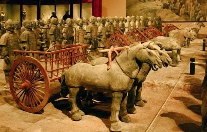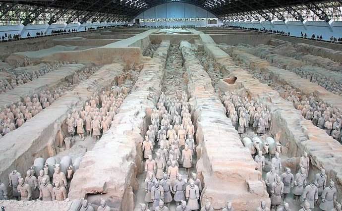 През 1974 г. китайските селяни се занимават с пробиване артезиански кладенец, откри гробницата на император Шихуанг, управлявал от 246 до 210 г. пр.н.е. Четири години по-късно мястото на древното погребение започна да се разкопава, продължава и до днес. В гробницата археолози са открили Уникални скулптури от теракота на воини в човешки ръст. Всяка глинена фигура, направена от древни майстори на ръка, особен и уникален.