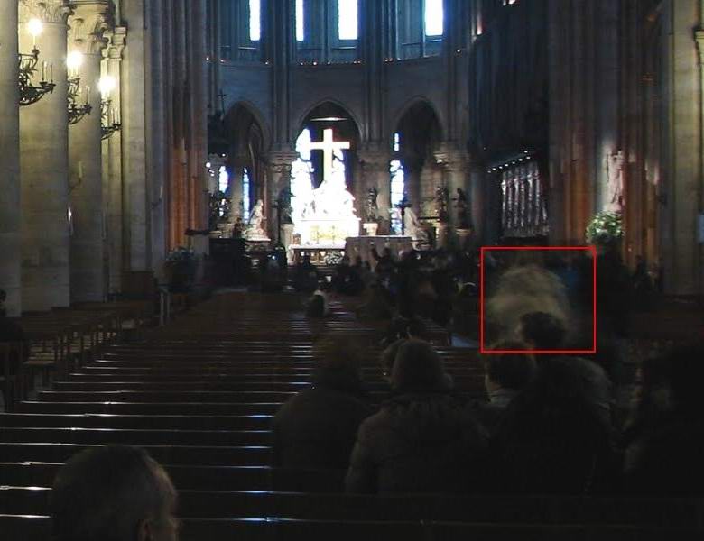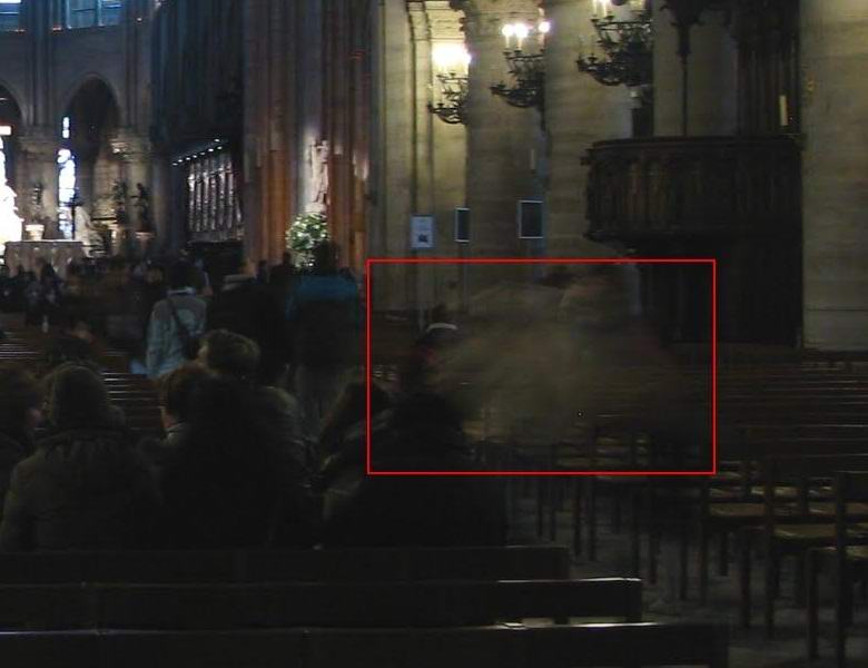 Снимах няколко пъти главния олтар Нотр Дам и когато по-късно разгледах снимките си, попаднах на два от тях са този неидентифициран клуб с кафеникава пара. Той е малко прилича на дим от тамян, но наблизо не е имало свещеник кадилница. Освен това в една снимка този странен облак тя е блокирана от непозната глава. Всичко, което направих с изображенията в редактор, – това ги озари малко и обиколи аномалията с червено правоъгълници. Сигурен съм, че това не е пареидолия от облака висящи във въздуха, зад него няма повърхности и то ясно се откроява на фона на откритото пространство. Имам добро познат, който е голям скептик и все още притежава невероятна способност лесно да намерите логически обяснения подобни снимки. В този случай той се провали рационално обяснете „призрака“ в храма.