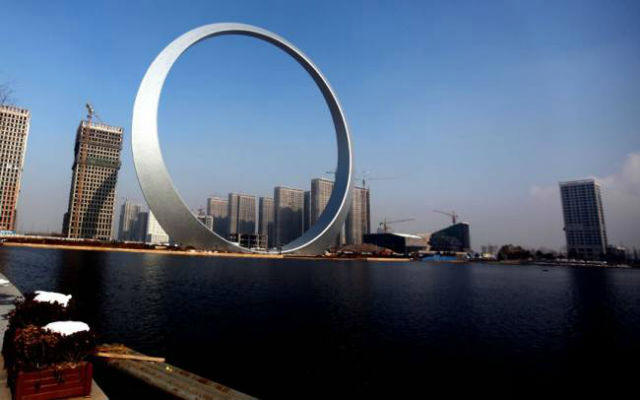 Не е доволен от строежа на мистериозния гигант структури в пустинята, китайците изграждат междуизмерни портали в центъра на градовете им. Какво означава тази конструкция от 157 метра? метал в град Фушун в провинция Ляонин на североизток Китай?