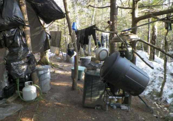Снимки от открити източници Местните жители разбраха, че в горския пояс някой се крие, защото къщите им редовно са били ограбвани. НайтТой направи стотици хакове за няколко десетилетия. Той открадна спални чували, дрехи, кутии с пропан, батерии за уоки и токи също огромно количество храна и алкохол. Арест на рицаря твърди, че очилата са единственото му собственост, по-късно представители на закона намериха своето убежище и всичко останало откраднат. При разчистване на лагера му две пикапи бяха натъпкани с неща. Найт прекара време в гората, играейки Nintendo Gameboy, размишлявайки върху преобърната кофа, гледане на телевизия, правене на огньове през зимата, четене откраднати книги и списания, както и напиване и слушане на радиото.