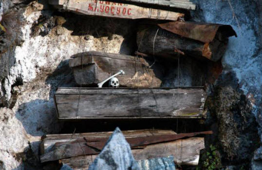 СТЪКЛИ В небето, но ако мислите толкова мрачно екзотиката е характерна само за Китай, тогава грешите. Висящ има гробища в някои други азиатски страни, например в Индонезия и Филипините – в провинция Сагада. Филипинци преди отколкото да сложат мъртвец в ковчег, те опушили тялото му със специални смеси, така че да е по-малко разградимо. В крайна сметка беше нещо като мумия. Тя беше настанена импровизиран ковчег, чиято функция се изпълнява куха вътре ствол на дърво и поставен в тясна “единична” пещера или окачена на скала. Честно казано, трябва да се отбележи, че учените успяха да открият пещери, пълни до ръба с ковчези. Това ги накара да мислят, че са погребани в такива “общежития” простосмъртните. И “единичните апартаменти” бяха предназначени за хора от високото общество. Експертите са определили тази възраст най-старото погребение на Сагадан е около 2000 години, а най-младият – 15 години. Да, да, обичайът да висят ковчези Тук са съществували скали до 90-те години на XX век. Само в наскоро филипинците започнаха да погребват мъртвите си в земята. Но местните копнеят за старите времена, когато душата на заминала беше по-близо до небето и прахът беше надеждно защитен от наводнения, така че чести в Сагада. РОК ЗА ВСИЧКО НЕ СЕ СЛЕДВА … Какво е Тана Тораджа? Районът в Сулавеси е третият по големина остров на Индонезия. АИзвестен е с уникалните си погребални обреди. Много векове обратно местните жители, изпращайки мъртвите си в последния им път, изградени за тях издълбани ковчези-саркофази под формата на лодки и животни, поставете там онези неща, които починалият е използвал по време на живота си, и оставени ковчези в подножието на скалите. Но с времето гробовете започнаха да ограбят потомци, безразлични към миналото и традициите, и обредите сложно. Телата на мъртвите били поставени високо в планината – в пещери или в специално издълбани ниши. И понякога бяха окачени скали, почти като китайците. Изглежда невероятно но по толкова странен начин островитяните погребват мъртвите си и сей день. Тялото на бедняк, починал извън Тана Тораджа, роднини, както преди стотици години, се опитват да доставят у дома. Единствената разлика е, че преди всеки селото имаше своя стръмна планина за погребение. И днес, защото липса на безплатни скали и скали местните жители използват често гробище. Животът нараства в цената, нараства в цената и смъртта. Отделни скали изобщо не е достатъчно … Max OIL