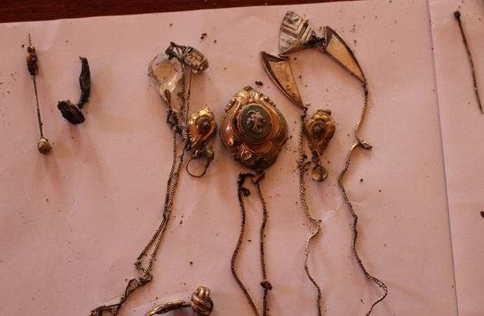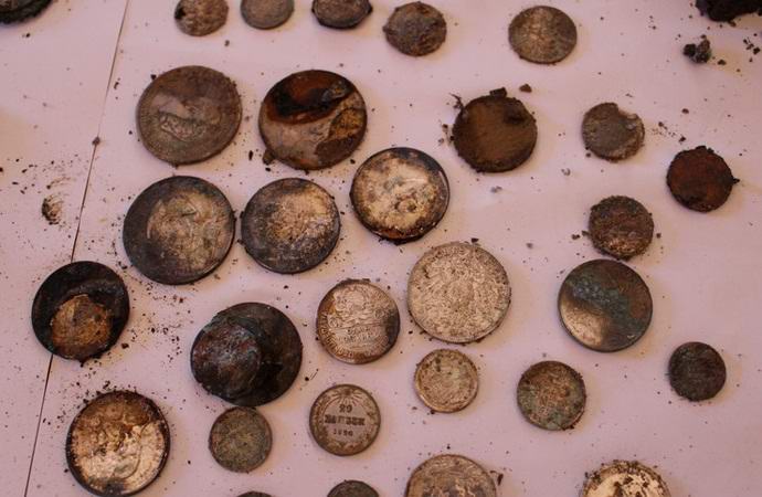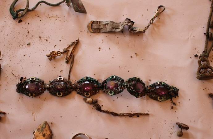 Картата на дядо не лъжеше: двама бяха погребани в земята кани, пълни с часовници, скъпоценни бижута и монети деветнадесети век Освен това в една от каните е намерена невероятно рядък калъф за цигари, направен през 1935г.