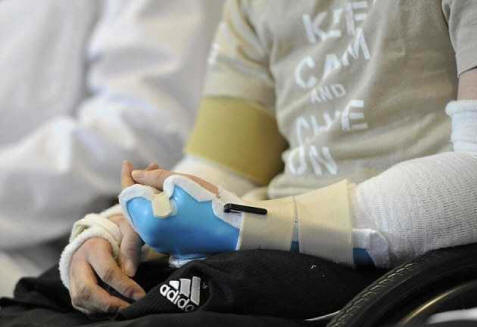 „Той е млад мъж с голяма надежда и е много упорит, в по добър начин, разбира се “, каза д-р Джейми Шор съобщи, че Мароко вече се опитва да използва ръцете си, въпреки че той липсва чувствителност в пръстите и той се стреми да направи нещо за какво бавно растящите нерви и мускули все още не са готови.