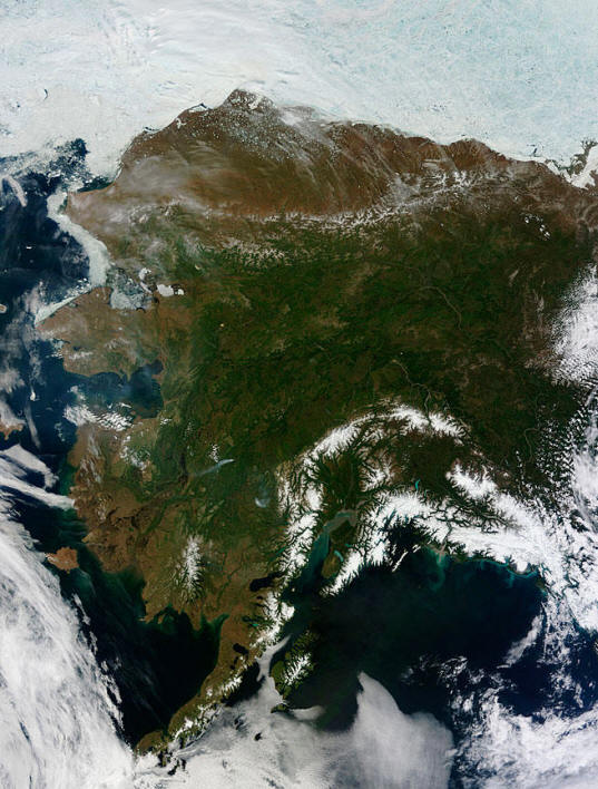 Аляска от сателита, 17 юни 2013 г. © НАСА / Джеф Schmaltz / LANCE MODIS Екип за бързо реагиране | Предаване чрез Ройтерс