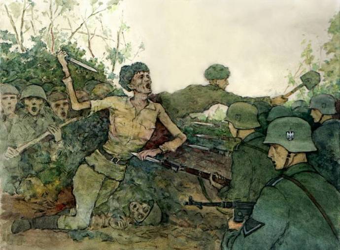 За Сергей това е окръгът Мясни Бор в района на Новгород, така че наречена Долина на смъртта, където само по официални данни от зимата четиридесет и една и до есента на четиридесет и втора почти двеста хиляди загинаха Съветски войници от Втората ударна армия, без да броим цивилни. Всъщност броят на жертвите в тази обилно напоена с кръв кръв (имаше операция за пробиване на Ленинградската блокада и запазване на коридора на живота), мисля, беше много повече.