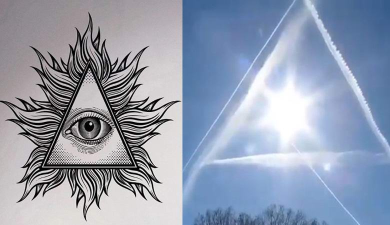 Мъжът в този момент забеляза изненадващо дори над земята триъгълник, съставен от следи от кондензация на свръхзвуков самолети. И в средата на този фантастичен триъгълник блесна слънцето …