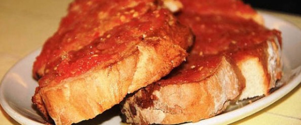 Испанците ядат пържен хляб с чесън и домат за закуска картофено пюре.