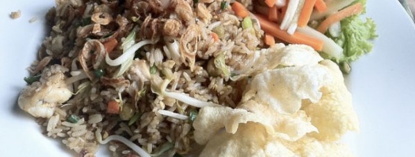 Салата с наденица (от какво се прави наденица), скариди и пилешко месо – Индонезийска закуска.