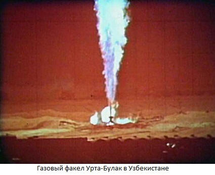 При пробиване на кладенец газът изтича от земята. налягането газовият кондензат беше ненормален – над 400 атмосфери. отегчителен комплекс просто пометен. Хората, които бяха там, загинаха. Спешно се приема мерките за отстраняване на произшествието не дадоха резултат. Има заплаха запалване и експлозия на газ, изтичащ от земята. служители тренировка отиде до къщите на селяни и предупреди: в колибите не удавете се, не включвайте светлината, не пушете и най-доброто – оставете за няколко дни. Ден по-късно експертите решиха: вх избягвайки още по-страшна катастрофа, газ изтича на повърхността подпали. Чу се експлозия, а в покрайнините на селото 30 метра се извиха в небето огнен фенер.