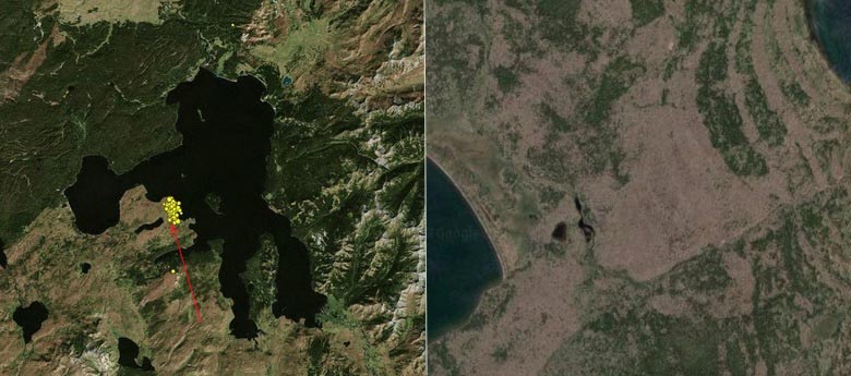 Това е тесен джъмпер между едноименното езеро Йелоустоун. парк и малък резервоар – Делация (виж снимката). Създава се впечатлението, че тук работи странно оборудване изкуствен произход. Ако вземете предвид това по-подробно парцел земя с помощта на Google Maps, тогава ще видим пусто място с гънки на терена, най-вероятно трудно преминаващ. Кой и какво дали пробива там, тества, не е ясно …