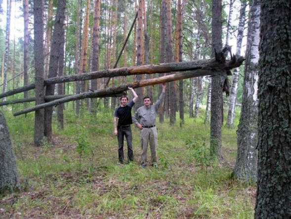 – Те създават много структури от дървета и клони. Слагат колиби, огъвайте и усуквайте клони, залепете стълбове в земята като запас. В същите гори на Вятка има невероятни конструкции: огромни стволове с тегло 200 кг, приковани между тях други два ствола. Човек със собствените си ръце не изгражда това състояние и оборудването в тези горски джунгли няма да работи.