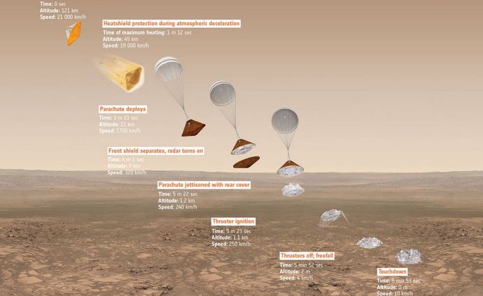 Чрез „кацане“ модулът също ще бъде проверен нов Европейска система за кацане на роувъри “Schiaparelli”. Така е необходими за отстраняване на възможни грешки в него и в освен това по-ясно засадете по-ценен модул – Роувър Exomars планира да стартира на Червената планета през 2018 година година.