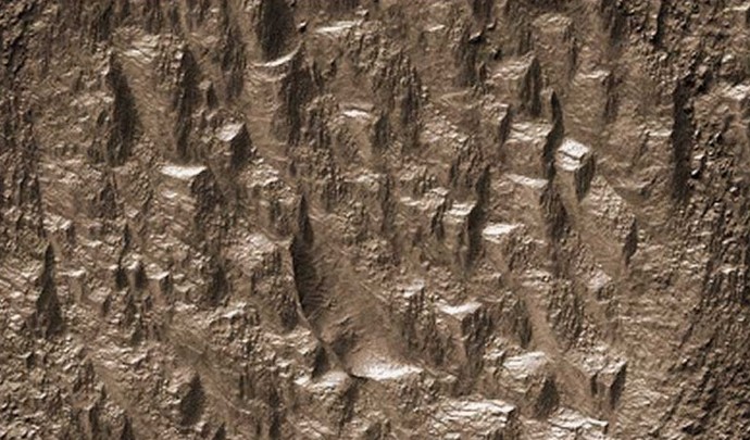 HiRISR камера с висока чувствителност улавя структурите сравнително правилна геометрична форма на равнината на Елада, разположен в южното полукълбо на Червената планета, точно в огромно кратер с диаметри от почти две хиляди километра и дълбочина осем хиляди метра. Координатната точка е 42,7º S и 70,0º E.