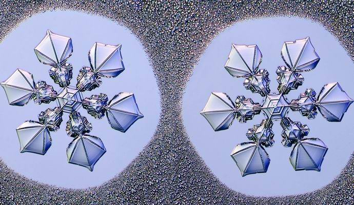 Резултатът е два еднакви на външен вид обаче снежинки различни по атомна структура. Libbrecht ги сравнява с идентични близнаци, които имат идентичен външен вид, обаче различни герои.