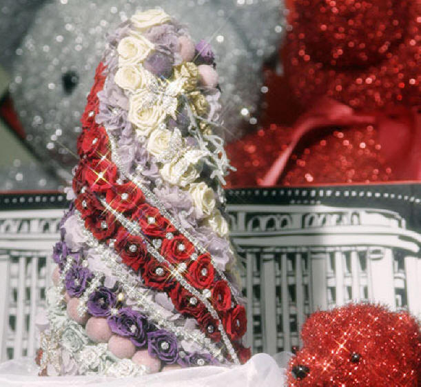 Така че стойността на коледното дърво достига астрономически суми, самата тя няма нужда да се отличава с гигантски растеж. В2007 г. в един от търговските центрове на японската верига Такашимая в продажба се появи малко коледно дърво, което бих могъл да си позволя да купя само милионер. Дизайнът й е разработен с участието на Френски бутик за цветя Клод Куин. Дървото се състояло от няколкостотин миниатюрни сушени рози. На венчелистчетата всеки от тях като капки роса лежеше диаманти, донесени от Австралия и Южна Африка – само около 400 броя с общо тегло 100 каратово. Приятно допълнение беше плюшено мече с диамант окачване. Въпреки това, желаещите да закупят този коледен сувенир никога не е намерен.