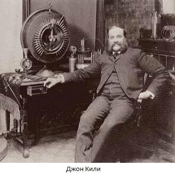 През 1873 г. талантливият американски инженер самоук Джон Кийли заяви, че е открил начин да получи енергия от околната среда пространство. Физическите обяснения на процеса, който той откри, бяха изпълнен с термините „симпатичен“ от самия Кили вибрация “,” етерични пари “,” доставяне на материя “,” динасферични власт “, което не би могло да задоволи научните експерти. Повечето от те бяха обявени за Кийли за измама.