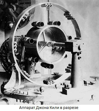 Кили, като практикуващ, наистина беше объркан в научните от гледна точка, но той изгради работеща машина и демонстрира пред обществеността му. Без външен източник на енергия те се въртяха огромни колела, кабели бяха скъсани, стоманени пръти бяха огънати. Металната топка, изхвърлена от „Кийли машината“, наниза куп дебели дъбови дъски. Големи дилъри в Ню Йорк и Филаделфия, Впечатлени от видяното, те решиха да инвестират пари в изобретателя и организира акционерно дружество „Кили Джийнс“ с монтаж с капитал 100 000 долара. Енергията от нищо не обещаваше пробив в развитието пристигнаха техници и лунатици. Пробивът обаче не се състоя времето мина, но нямаше дивиденти. Периодично се появява съобщава, че запаленият двигател е на път да влезе на пазара, а след това акциите на компанията нараснаха с 200 или повече точки (дори веднъж 1000!), А след това също падна надолу. През 1888г фирмата фалира; Кийли е съден. В съдебното заседание изобретателят отказа да разкрие принципа на работа на своята машина, за което и имам краен срок.