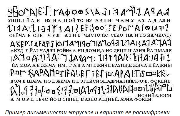 Но учените само вдигат рамене: четете записите на шумерите, Египетските йероглифи са дешифрирани, но етруските букви се оказаха толкова твърд орех, че влезе в италианския фолклор: изправен пред проблем, който той не е в състояние да реши, италианецът в Той казва: “Etruscum non legitur!” (Етруски не прочетете!). Чете се и как!