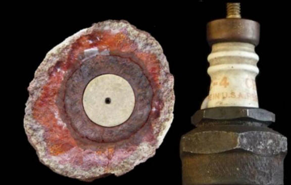 Артефакт от запалителната свещ на Косо и Форд (вдясно) за сравнение