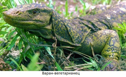 През 2010 г. във Филипините е намерен 2-метров мощностен гущер, т.е. яде изключително плодове. Гущерите са хищници и открития растителнояден монитор гущер е еквивалентен на откриване за зоолози вегетариански крокодил. Открих Varanus bitatawa през цялото време прекарва на дървета, през повечето време седи неподвижно. Акъде бърза? “Неговата плячка няма да избяга от него.” само когато зоолозите, винаги внимателно гледайки под краката си, се вдигнаха глави, те бяха изненадани да открият неизвестно по-рано на дървото животно.