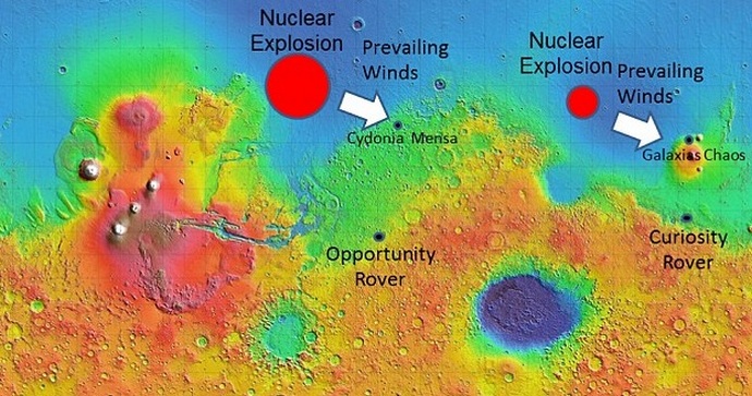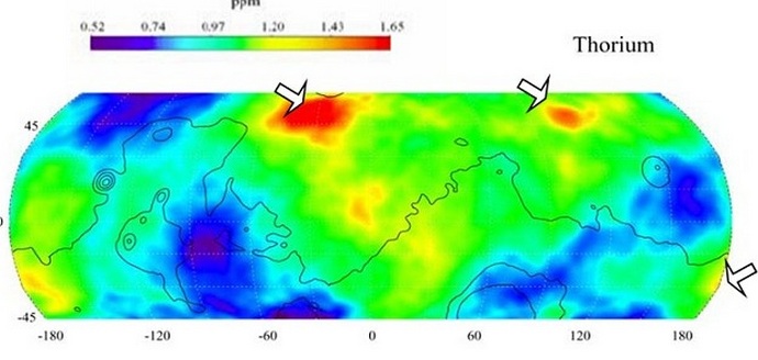 Обърнете внимание, казва той, всички следи са видими на планетата ядрена катастрофа, радиоактивни вещества като торий, уран (виж графика), както и радиоактивен калий. Най-вероятно Марсианците на цидоните били унищожени от извънземни.