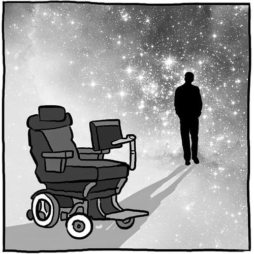 Докато тялото ми е ограничено до инвалидна количка, моето съзнанието облича необятността на Вселената – каза Хокинг.