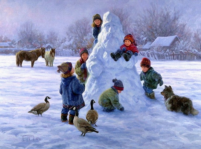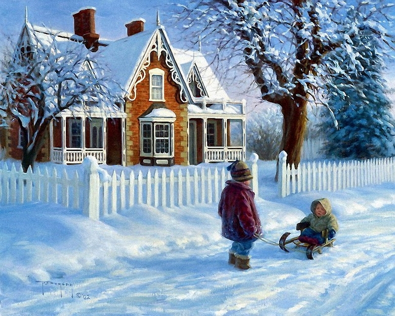 Американският художник Робърт Дънкан представя света с картини живот на село и така пронизващ по свой начин съдържание прелива от някакво необичайно, почти фантастично светлината на щастието, че можете да им се възхищавате безкрайно. Неслучайно ние Предлагаме ви да разгледате някои от тях по отношение на зимата теми на този празник на Нова година.